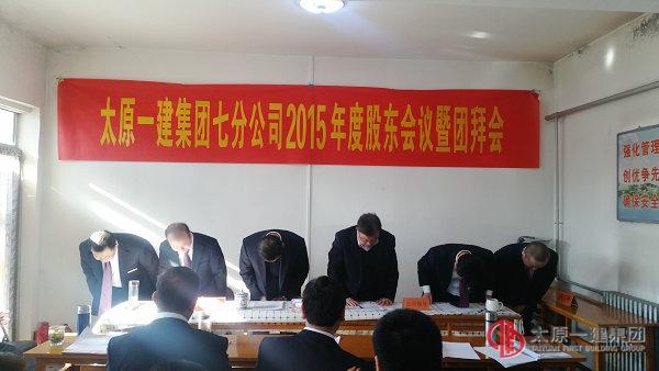 根据集团公司指示,七分公司于2016年1月17日上午8:30分召开了《太原一建集团七分公司2015年度股东会议暨团拜会》,会议由七分公司经理郭建新主持,集团公司董事王斌参加,七分公司全体股东和管理人员共同参加会议。