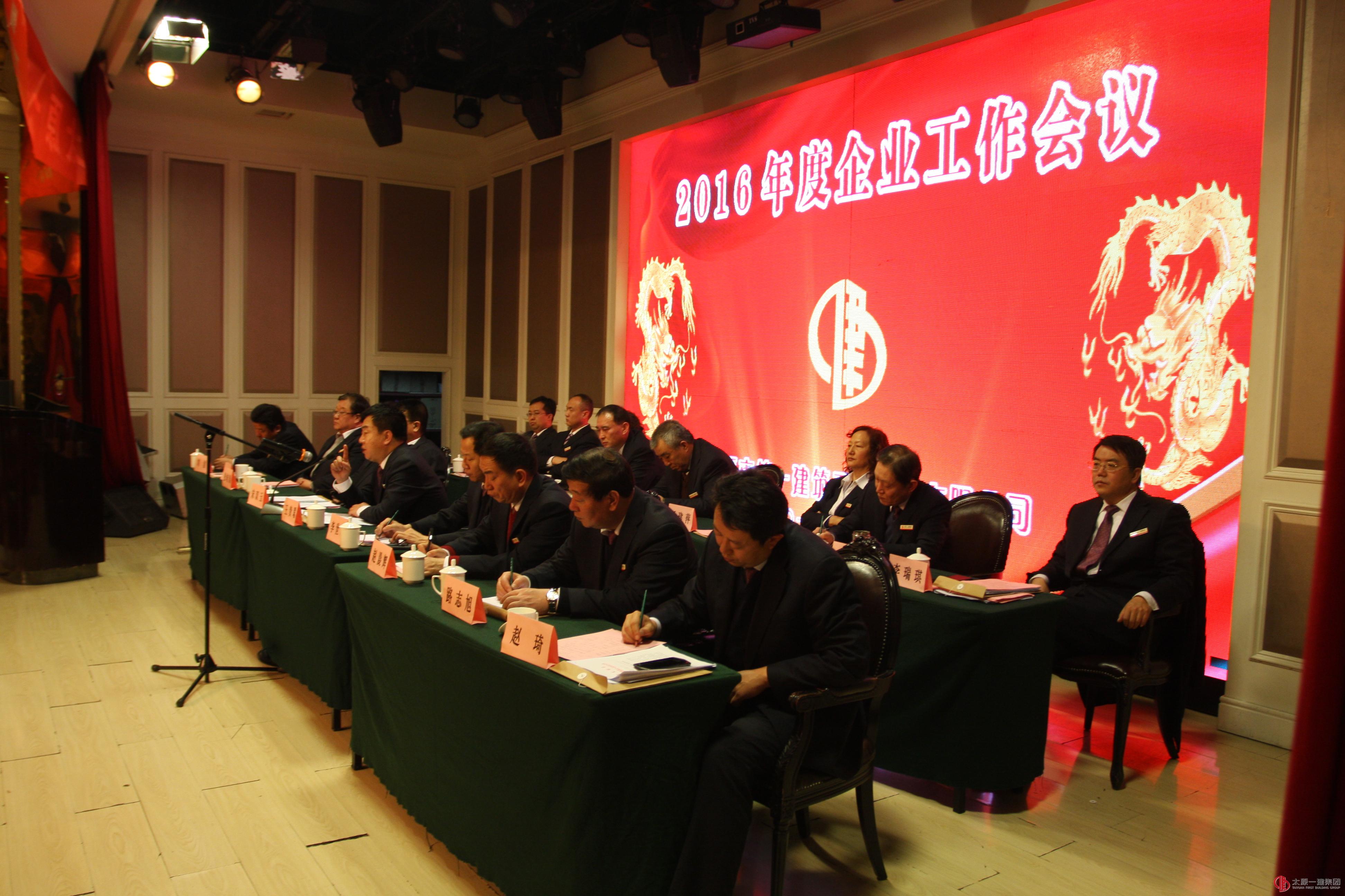 2016年1月30日上午8时,集团公司2016年企业工作会议在江南大酒店召开。集团公司董事会、监事会、经理层全体领导、各基层单位领导班子全体成员、公司机关全体人员计300余人参加了会议。副董事长宋双玉主持会议。会议在嘹亮的《筑起希望》歌声中开幕。①人力资源部部长范立强宣布2016年集团公司机构调整及人事聘免决定;②总经理李世雄作2016年企业工作安排报告;③常务副总经理张岐泰宣读颁发企业规章制度的通知和第三个三年发展规划纲要的通知;④董事王斌宣读颁发企业形象文化宣传的通知;⑤总会计师赵晨辉作关于签订经营目标责任书的说明;⑥董事长王贵聪分别为30个基层单位颁发了《企业规章制度》、《第三个三年发展规划纲要》和《企业形象文化宣传片》;⑦总经理李世雄分别与一分公司、二分公司、三分公司、四分公司、五分公司、六分公司、七分公司、八分公司、九分公司、十分公司、十一分公司、十二分公司、十三分公司、十五分公司、十六分公司、十七分公司、十八分公司、广东分公司、项管处、项管二处、直属分公司、直属二分公司、直属三分公司、直属四分公司、直属五分公司、直属六分公司、吕梁分公司、建安分公司、经营公司、龙城公司等30个经营负责人在经营目标书上签字。⑧工会主席李瑞琪宣读表彰决定,集团公司领导分别为2015年的模范单位:一分公司、七分公司、十分公司、直属分公司;优秀单位:二分公司、三分公司、十三分公司;先进单位:经营公司、九分公司、十七分公司、十九分公司、广东公司、项管处、项管二处以及18个好团队和10名好员工代表颁奖;⑨基层单位代表赵志鹏、机关部门代表郭俊斌分别代表基层单位和机关部门在大会上作表态发言(全文另发);⑩集团公司党委书记董事长王贵聪作重要讲话(全文另发)。最后,宋双玉就贯彻会议精神提出“按照广泛深入的要求抓好发动;按照全面细致的要求抓好贯彻;按照扎实有效的方法全面抓好落实三方面的要求。