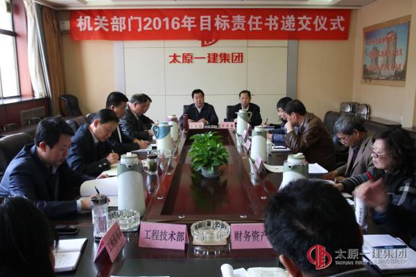 3月25日下午,公司在二楼会议室举行机关部门2016年工作目标责任书递交仪式。15个部门参加会议,并分别按职责职能向党委书记、董事长、总经理递交了2016年工作目标责任书。