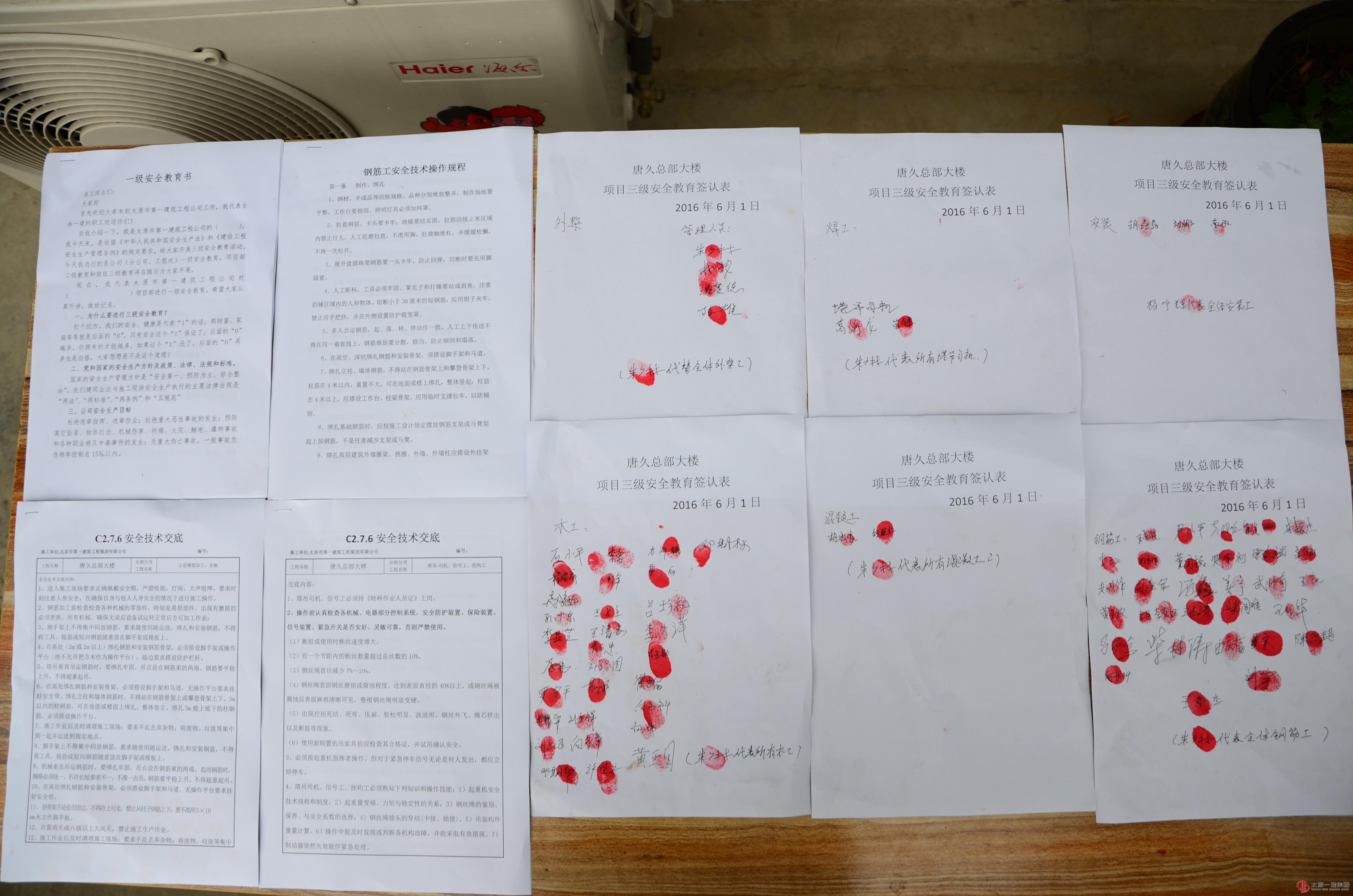 为了确保施工生产的顺利进行和职工的生命安全,2016年6月3日,直属分公司唐久总部大楼工程项目部深入贯彻落实集团公司安全生产月活动内容,开展“强化安全发展观念,提升全民安全素质”安全教育活动。