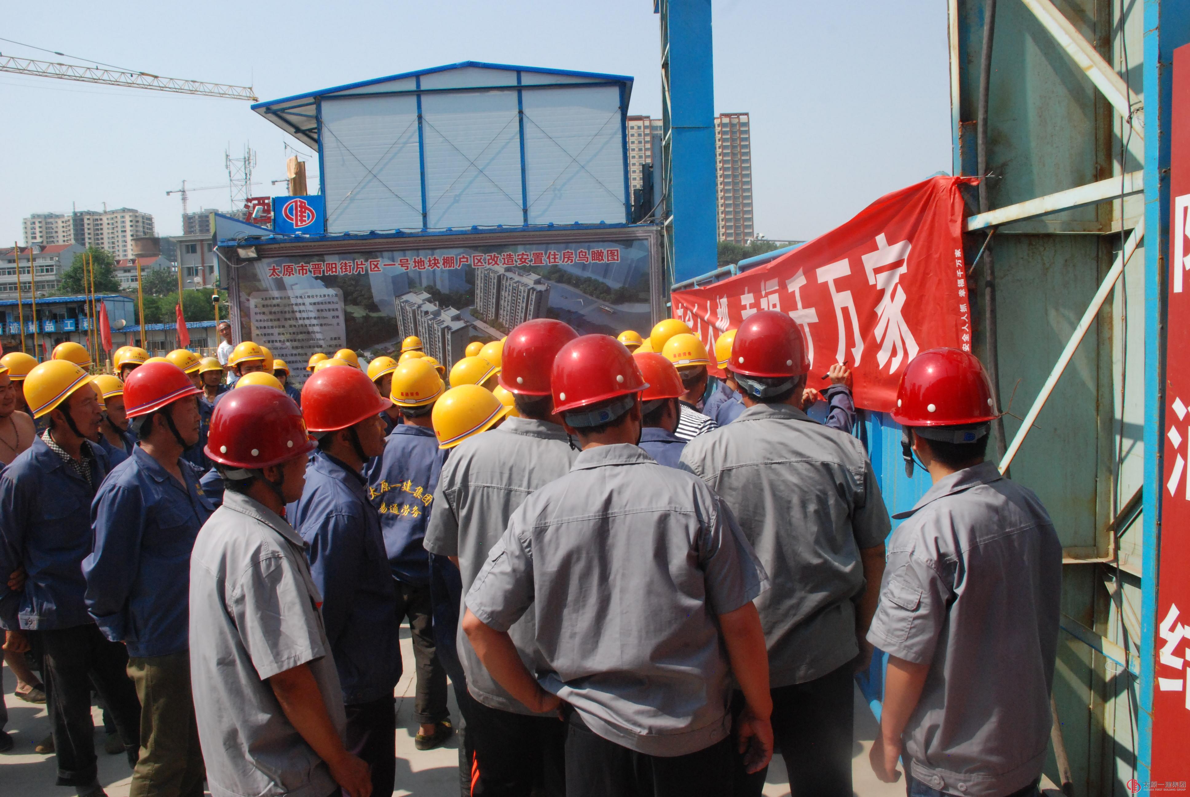 2016年6月8日,直属分公司承建的太原市晋阳街一号地块棚户区改造安置住房项目工地上,项目经理孟文彪组织项目部全体管理人员、易通劳务带班组长以及劳务人员开展“安全生产月”专题活动——三级安全教育、观看安全警示教育宣传片、宣传条幅签名活动。
