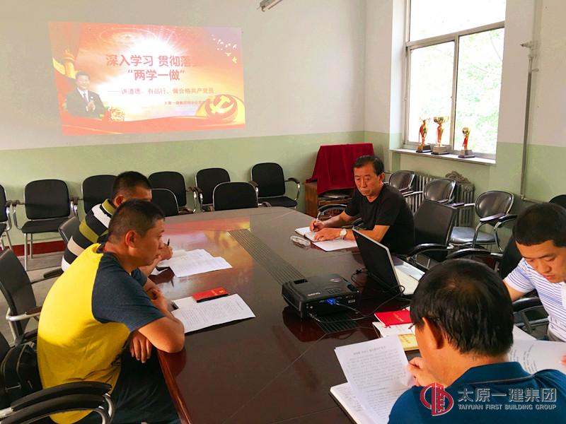 8月24日上午,太原一建集团四分公司党支部在分公司会议室召开全体党员“两学一做”第三阶段“讲道德 有品行”专题学习讨论会。会议的主要内容有:1、全体党员面向党旗重温入党誓词;2、党支部书记王东升,以“讲道德、有品行”为主题,带领大家上党课学习;3、全体党员围绕“讲道德有品行”主题交流讨论发言,其中:王东升、苗强作主题发言,任鹏、王润水、王勇刚作交流发言;4、全体党员观看了《深入学习 贯彻落实“两学一做”—讲道德 有品行 做合格共产党员》ppt学习课件。会议由党支部副书记苗强主持。