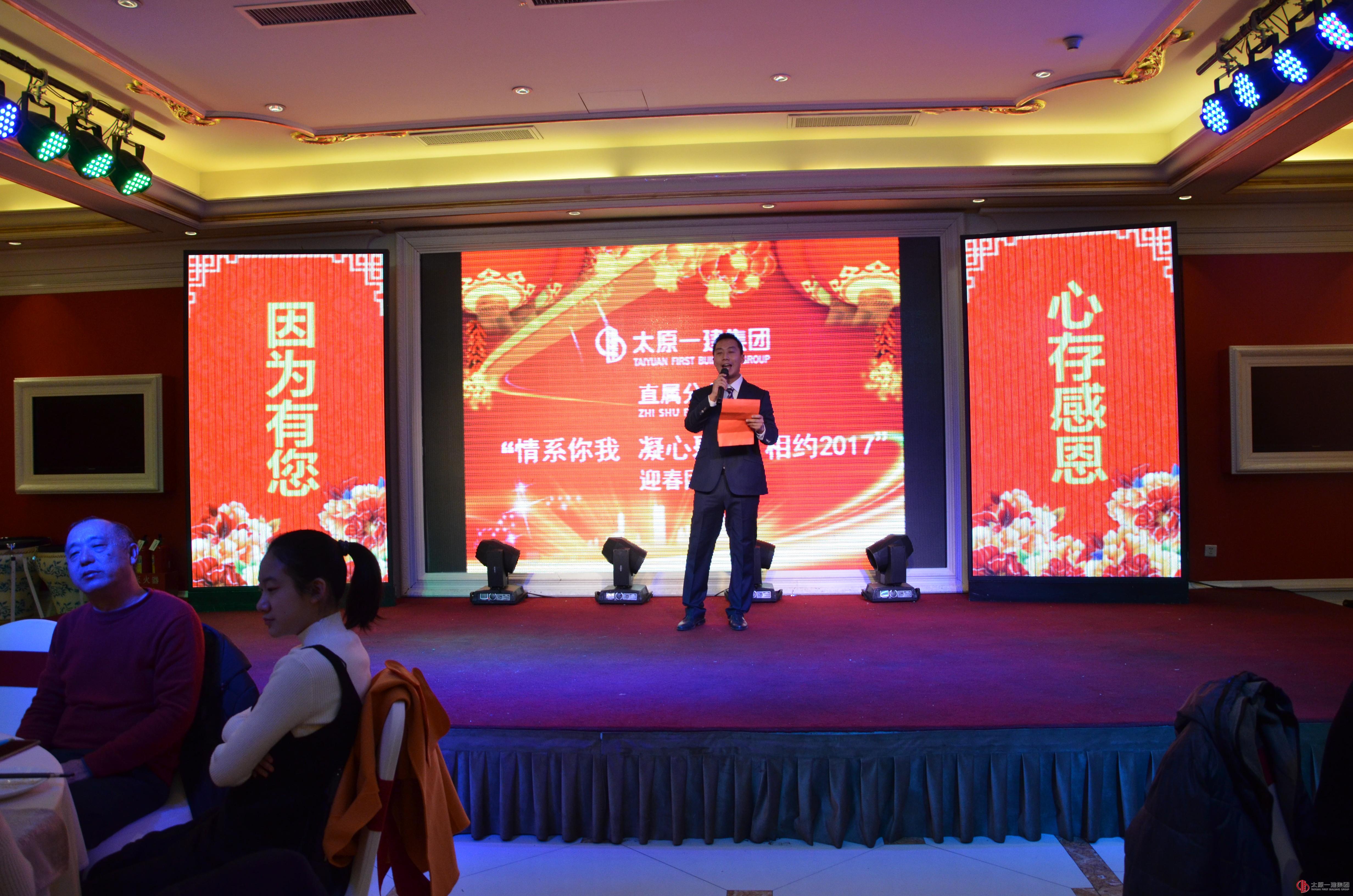 2月13日晚,我们欢聚一堂,开展以“情系你我、凝心聚力、相约2017”为主题的直属分公司迎春活动,共同分享2016年的收获和喜悦。出席今天活动的有分公司领导班子以及分公司全体管理人员,还有长期与我们合作的劳务分包相关负责人。