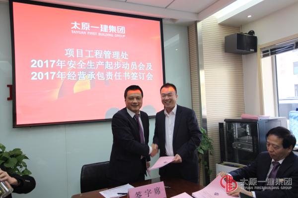 会议第一项由支部副书记李宝林宣读了集团公司有关任命文件;第二项由主任经济师、工会主席高荣珠宣读集团公司有关表彰决定;第三项由主任会计师孙天明通报2016年项管处经营指标完成情况,并对2017年经营承包责任书做解释说明;第四项由处长李朝峰同各项目部部长签订经营承包责任书;第五项由副处长刘泰宏做项管处2017年安全生产起步动员;第六项李朝峰结合3月4日集团公司会议精神对我处2017年总体工作安排部署:项管处2017年主要工作措施为七个抓1、抓任务承揽,一定要承揽上一定规模的自建任务;2、抓生产起步;3、抓学习提高,创建学习型团队;4、抓质量安全管理;5、抓企业家文化建设、坚持对职工的关心、关爱;6、抓青年人才的培养和锻炼;7、抓落实和执行力。第七项由集团公司分管领导司中谦作指导讲话:1、简单说开会的目的就是贯彻、落实、执行;2、七个抓补充一点要有考核;3、管理过程中的成本核算,克服避免经营风险;4、抓好内业档案资料工作;5、在经营红线的原则上项管处决不能越雷池半步。最后集团公司总经理李世雄对项管处安全生产起步动员做指导:1、讲好企业故事,用一家人的文化理念来打造一公司的团队;2、弘扬工匠精神,打造合格产品,提升我们团队的品质,优化人员结构,走出去,请进来;3、希望项管处今后在人才的培养上要先优化,再强化;最后希望项管处要站在集团公司的上游,争创集团公司一流。