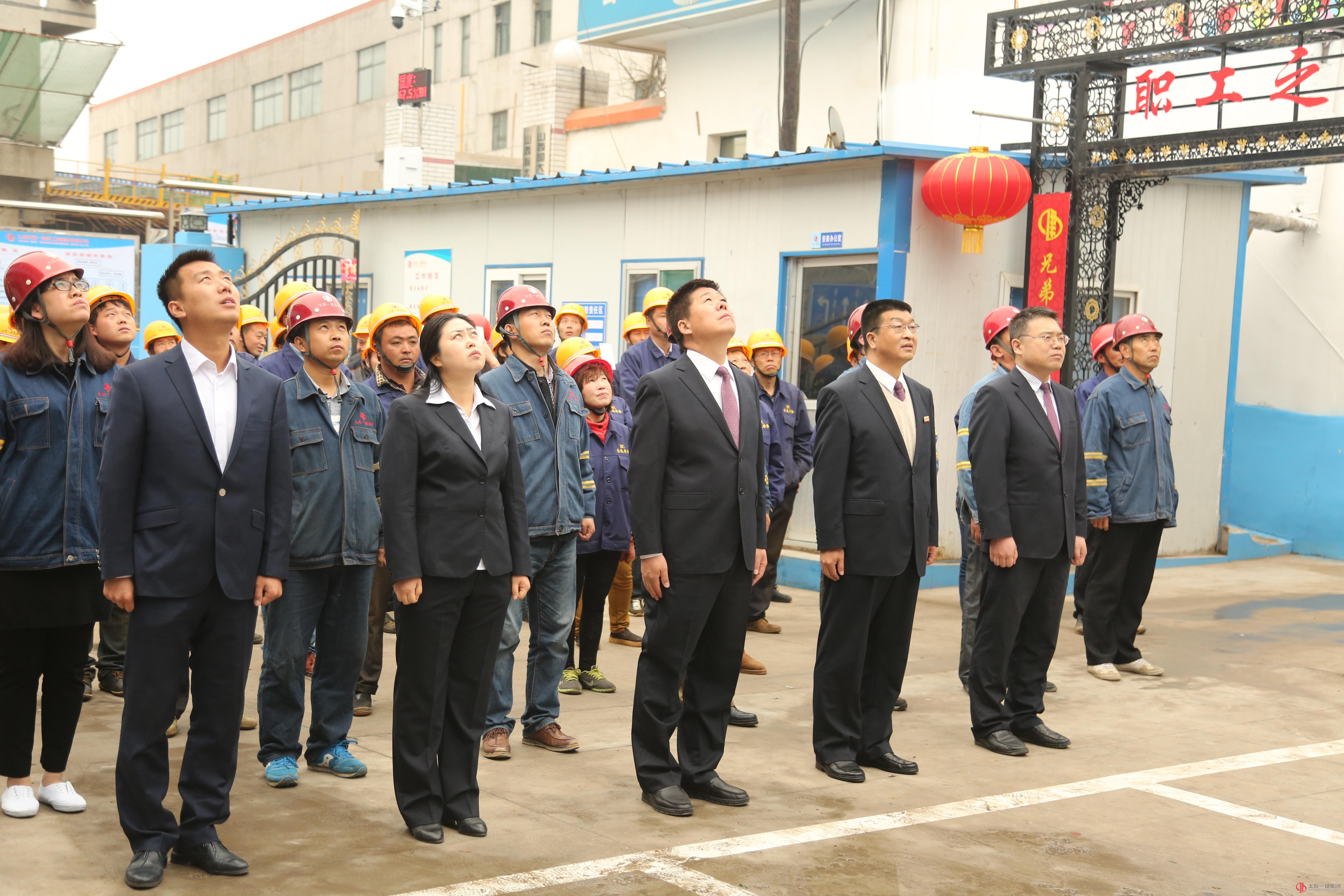 7点55分,机关大院的升旗仪式准备就绪。集团公司领导王贵聪、李世雄、张岐泰、赵琦、刘洁、赵晨辉、路志旭、王斌、李伟、范立强、李瑞琪、赵峰、赵志鹏、赵海荣、陈斌、郭俊斌、王建萍参加了机关大院的升旗仪式。大家统一穿着西装厂服在旗台前列队,高举右拳,高声诵读员工誓词,爱国爱企保平安的口号响彻云霄。行政保卫部的九名护旗手,由东向西,迈着整齐的步伐来到了旗台前,伴随着雄壮的国歌和嘹亮的司歌,国旗、厂旗和安全旗分别缓缓升起,全体员工伴着旋律高声齐唱并向旗帜行庄严的注目礼。仪式结束后,基层驻地单位和机关各部门分别在红毯上合影留念。集团公司领导宋双玉、司中谦分别在直属分公司和项目工程管理处施工现场参加了庆祝活动。