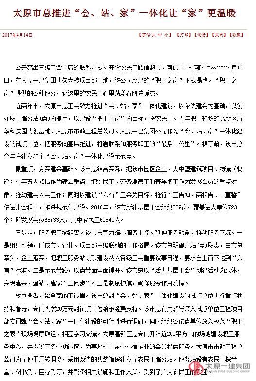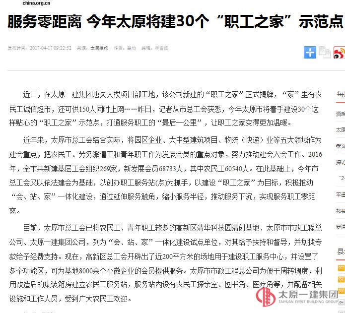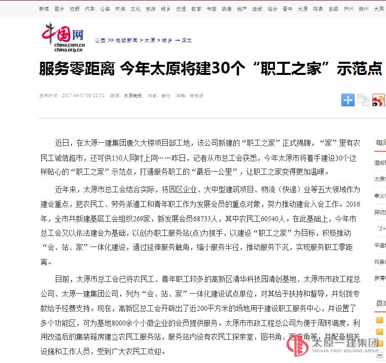 在庆祝集团公司七周年期间,工人日报、山西日报、太原日报、山西晚报、太原晚报、太原工人报、新华网、中国网、腾讯网、搜狐网等国家省市主流媒体在头版头条或较为醒目的位置,纷纷报道了集团公司七周年围绕企业形象建设主题年开展的“职工之家”“现场文明施工竞赛”等方面的活动报道。充分展现了集团公司在发挥工会组织的组织建设、企业文化宣传教育、精神文明创建等作用取得的成果和履行企业社会责任的良好形象。以下为媒体报道节选: