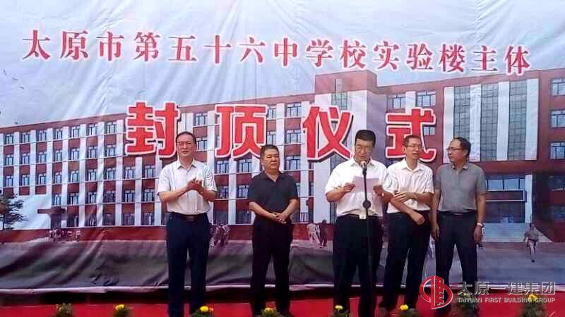 八月四日上午,六分公司承建的太原市第五十六中学实验楼举行主体封顶仪式,参加主体封顶仪式的有:太原市住建委刘杰总工,市住宅保障中心郭主任,第五十六中学杨校长,华翔建设监理公司李总监,集团公司宋双玉副董事长、李伟副总经理,六分公司薛军经理及项目部全体管理人员,劳务队等50余人。