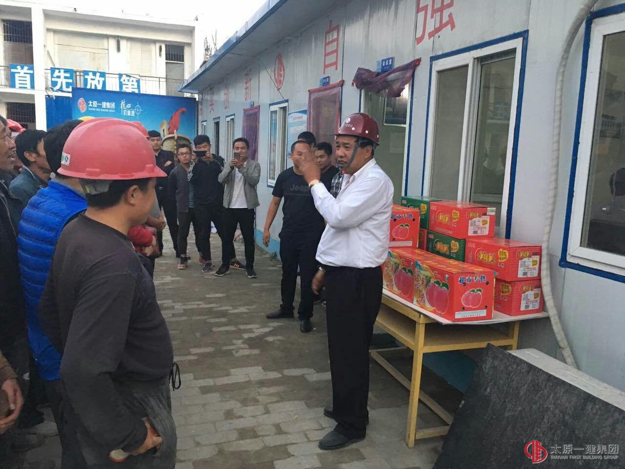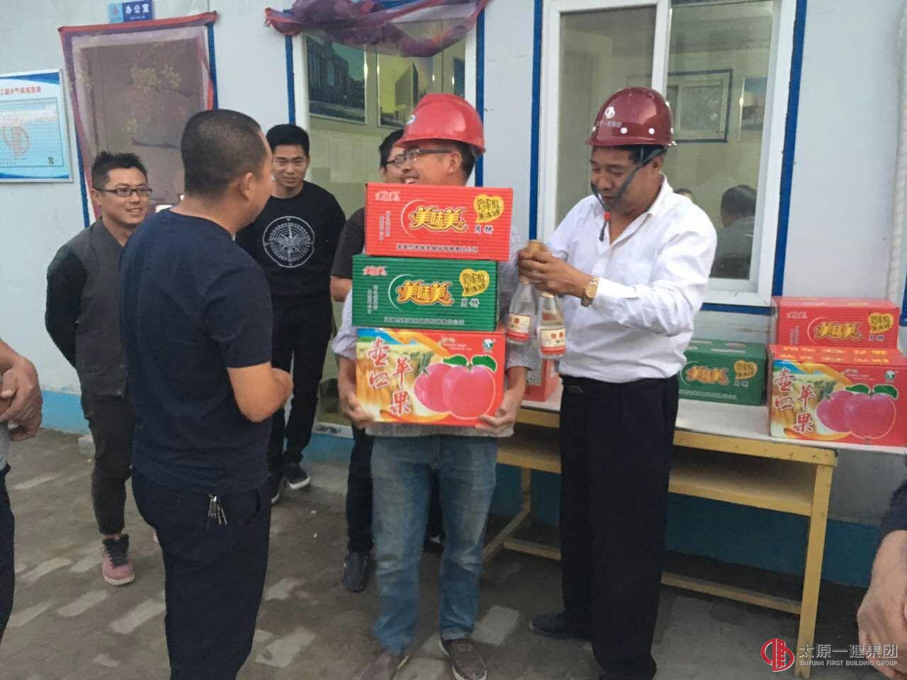 时值中秋,国庆双节来临之际,9月28日下午,直属三分公司经理颉二鉷走进长治屯留二中教学楼项目工地,看望慰问坚守在一线的全体项目人员,给全体农民工兄弟送上中秋月饼、水果等慰问品,感谢他们在施工过程中做出的贡献。用实际行动体现了一建“家”文化精神,使大家感受到大家庭的温暖。