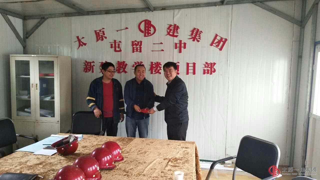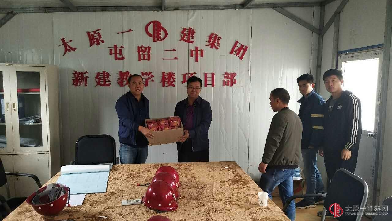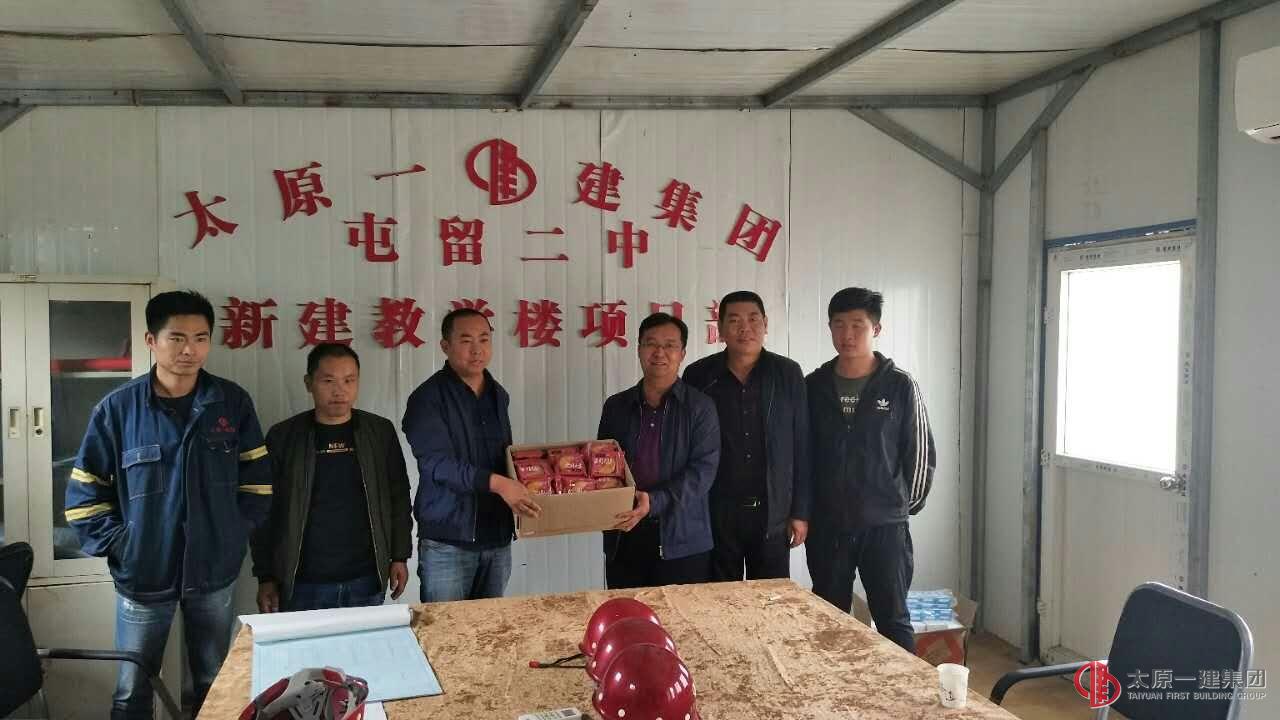 10月2日上午,时值中秋、国庆双节来临之际,集团公司总经理助理赵峰、工会主席李瑞琪等一行到直属三分公司承建的屯留二中新建教学楼项目部,为向坚守在施工一线的员工表示慰问,并给予节日的问候和衷心的祝福!