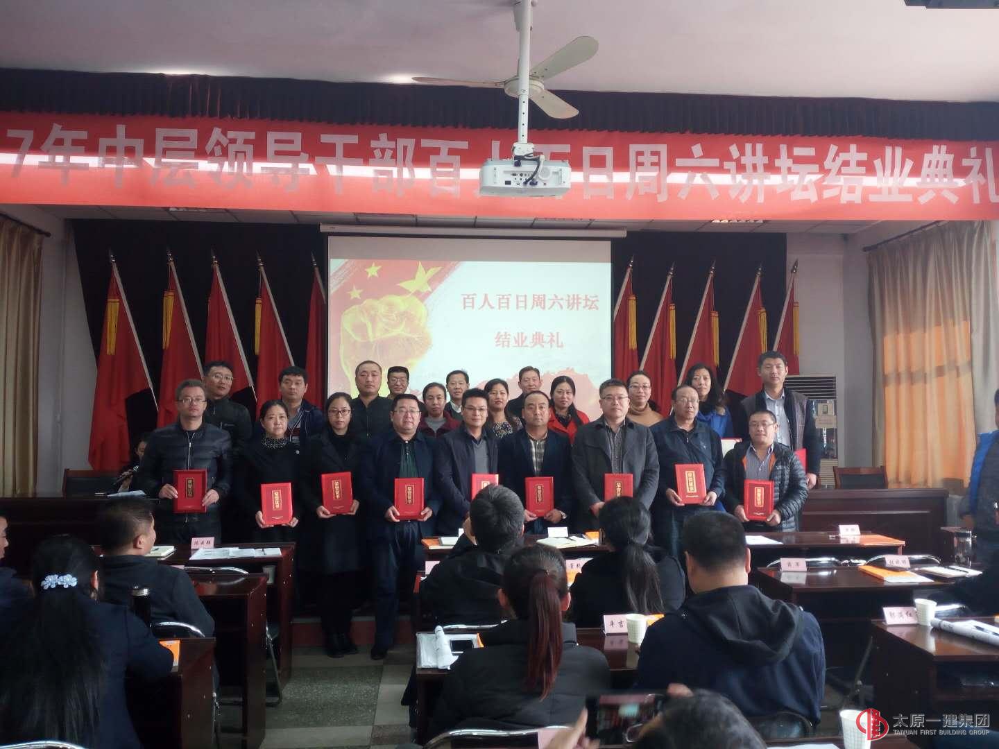 按照并一建经办发【2017】9号文件《2017年集团公司中层领导干部培训安排》的统一安排,以“增内力、强素质”为主题。着力能力提升分阶段培训,从2017年7月8日至11月4日,圆满地完成了培训计划。结业典礼上集团公司领导对18名优秀学员颁发荣誉证书并予以表扬,他们是:一分公司秦俭、二分公司陈云强、五分公司石保红、七分公司郑江峰、王福、十分公司郝泽峰、十六分公司刘永杰、十八分公司李春、直属分公司高卫国、刘卫红、直属二分公司武志军、项目管理公司冀立红、幼儿园李莉萍、常娟、机关冯志芳、程变琴、张浩、张立文。优秀学员高卫国作表态发言,他首先对能参加此次培训表示由衷的感谢,并表示在今后的工作中将不断加强学习,不断提升自身修养和综合素质,为集团公司的百年强企征程再立新功!