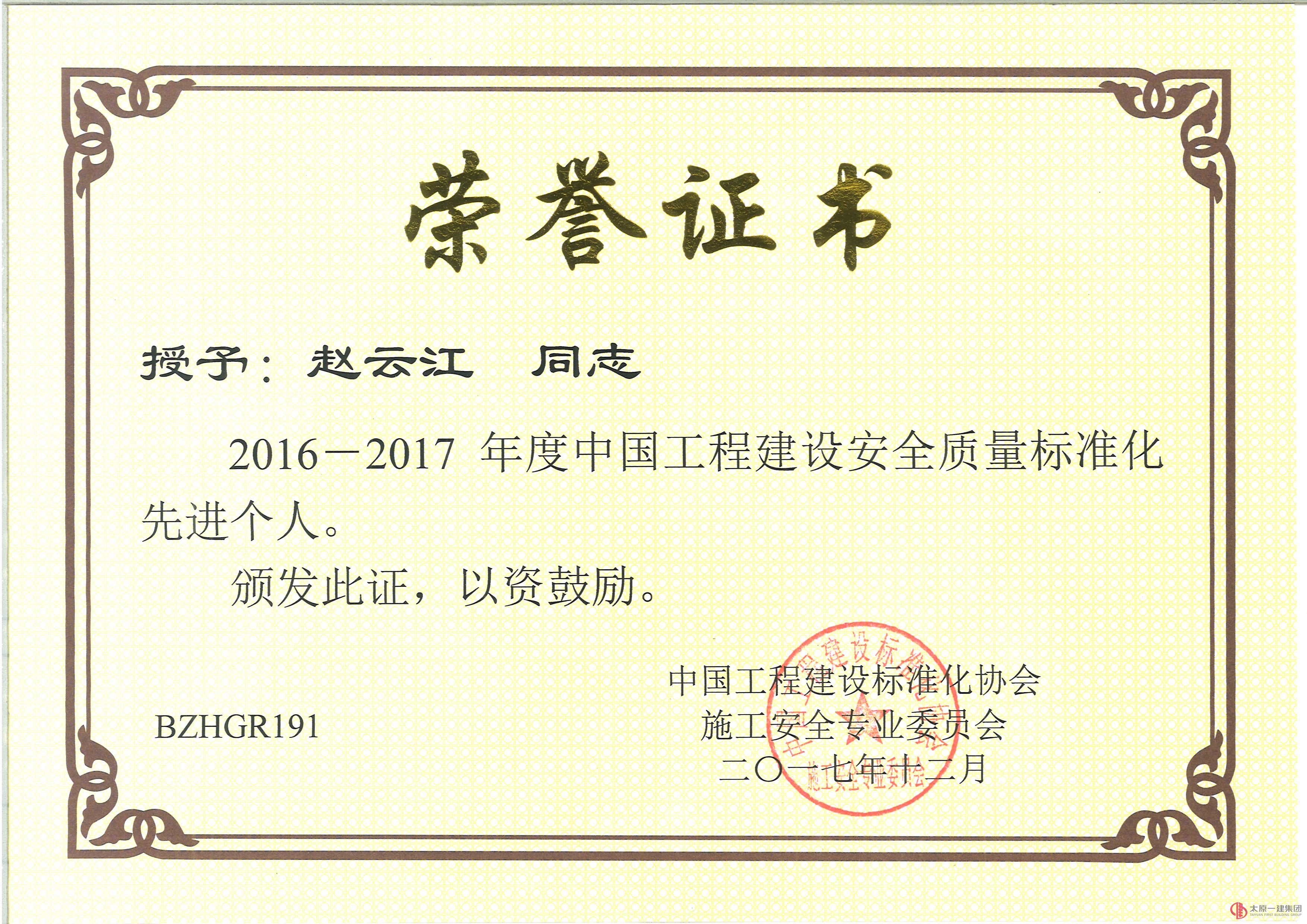 集团公司被评为2016-2017年度中国工程建设安全质量标准化示范单位