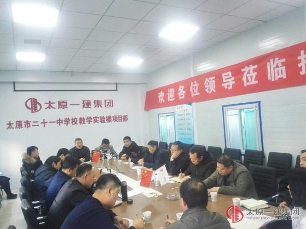2018年1月10日,太原市住建委总工刘洁、教育局总工薜文光赴二十一中教学实验楼项目调研并参加工程例会,对工程的质量、工期、安全、标化施工提出了明确要求。参加本次会议的有太原市二十一中学校领导、代建单位领导、监理单位领导、集团公司总经理助理、质量安全部部长赵峰及项目部全体管理人员。集团公司总经理助理赵峰最后做了表态发言:一定要安全、文明、按时、保质、保量地完成施工生产。