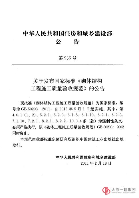 砌体工程施工质量验收规范GB50203-2011
