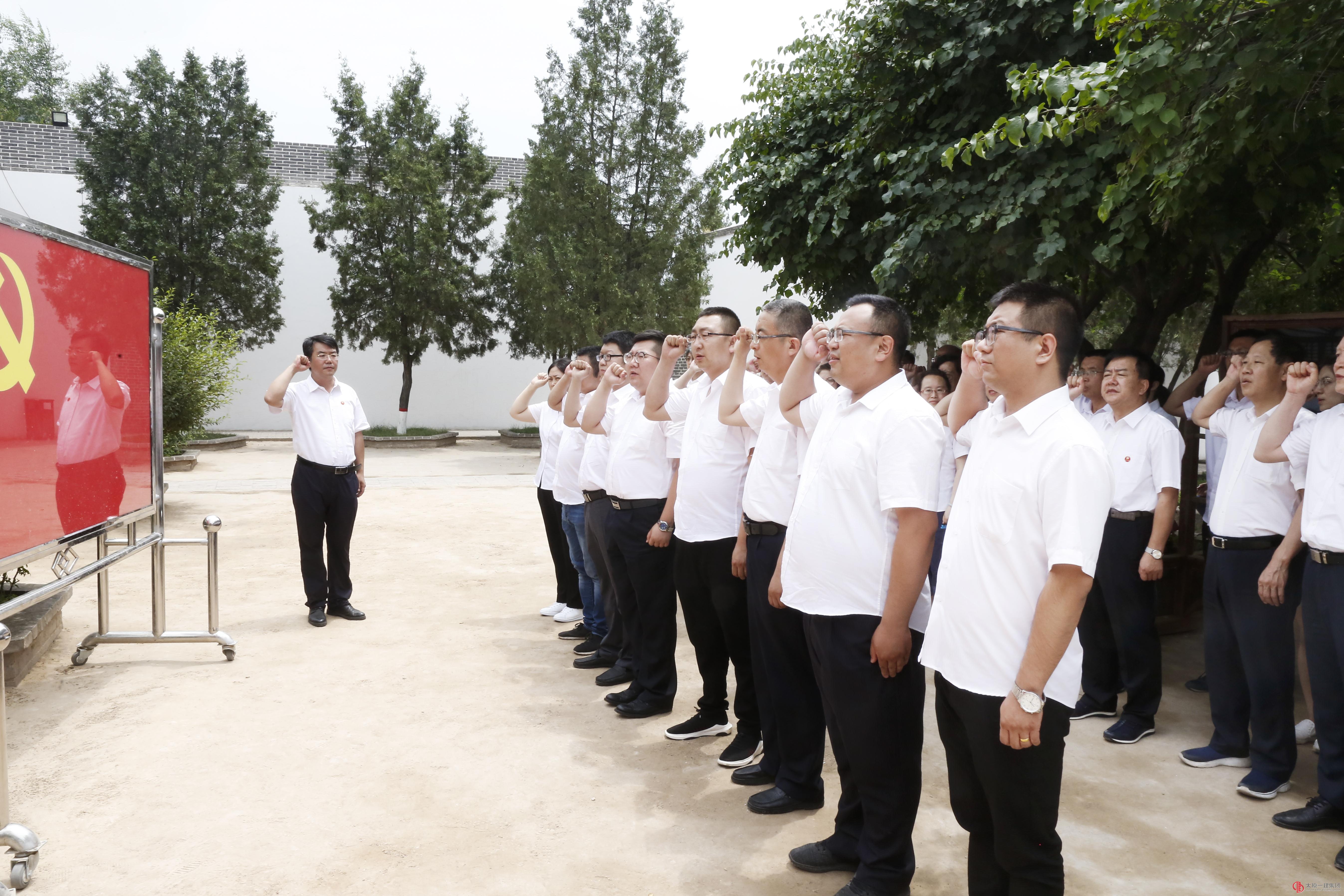 预备党员宣誓与党员重温入党誓词在晋绥军区司令部旧址进行,预备党员及全体党员面对神圣的党旗,举起右拳,庄严宣誓。王贵聪书记为8名预备党员佩戴了党徽,发放了党章,并勉励大家做到不忘初心,牢记使命,按照“四讲四有”标准、“四个合格”要求,发挥好党员的先锋模范作用。