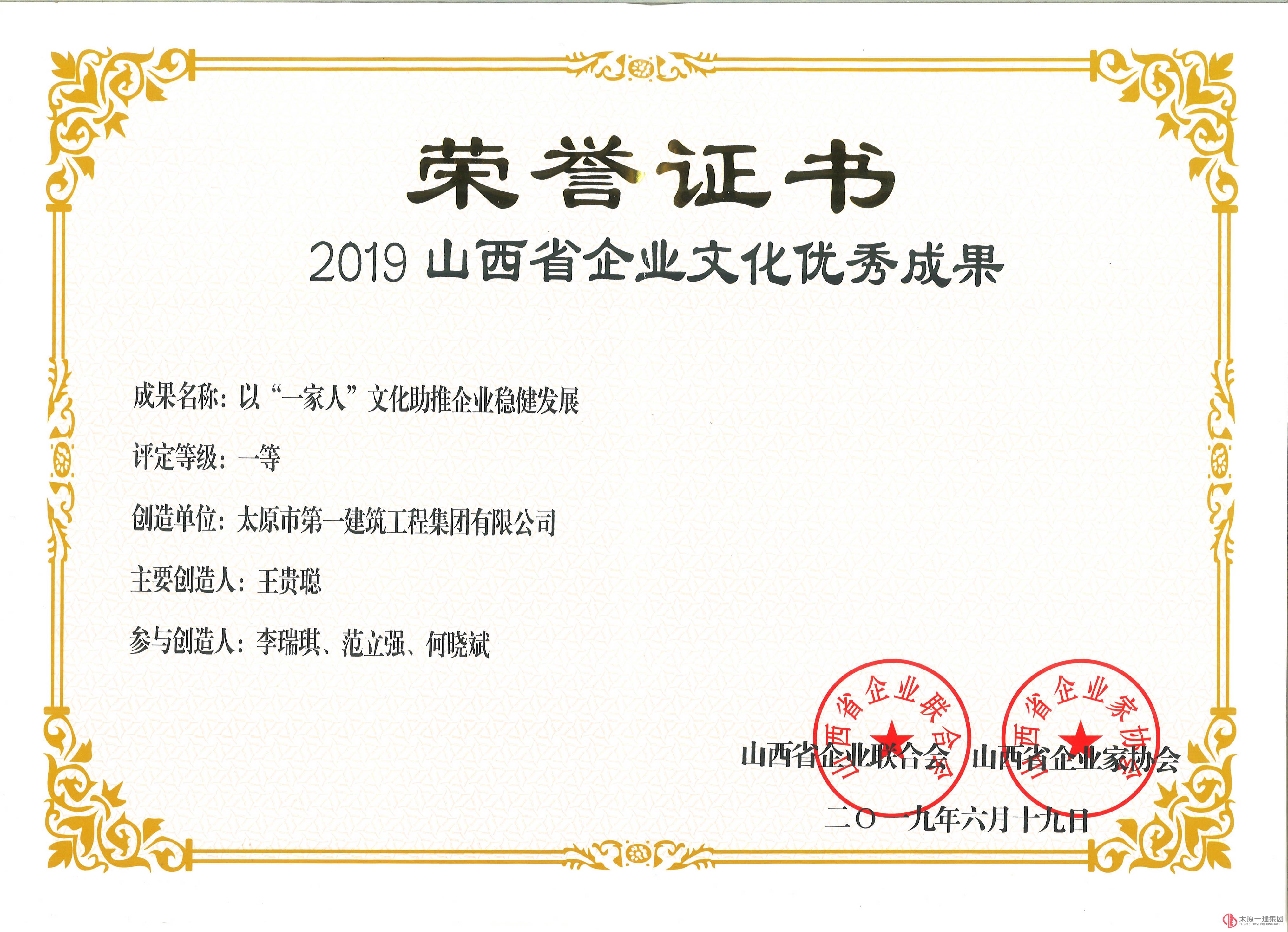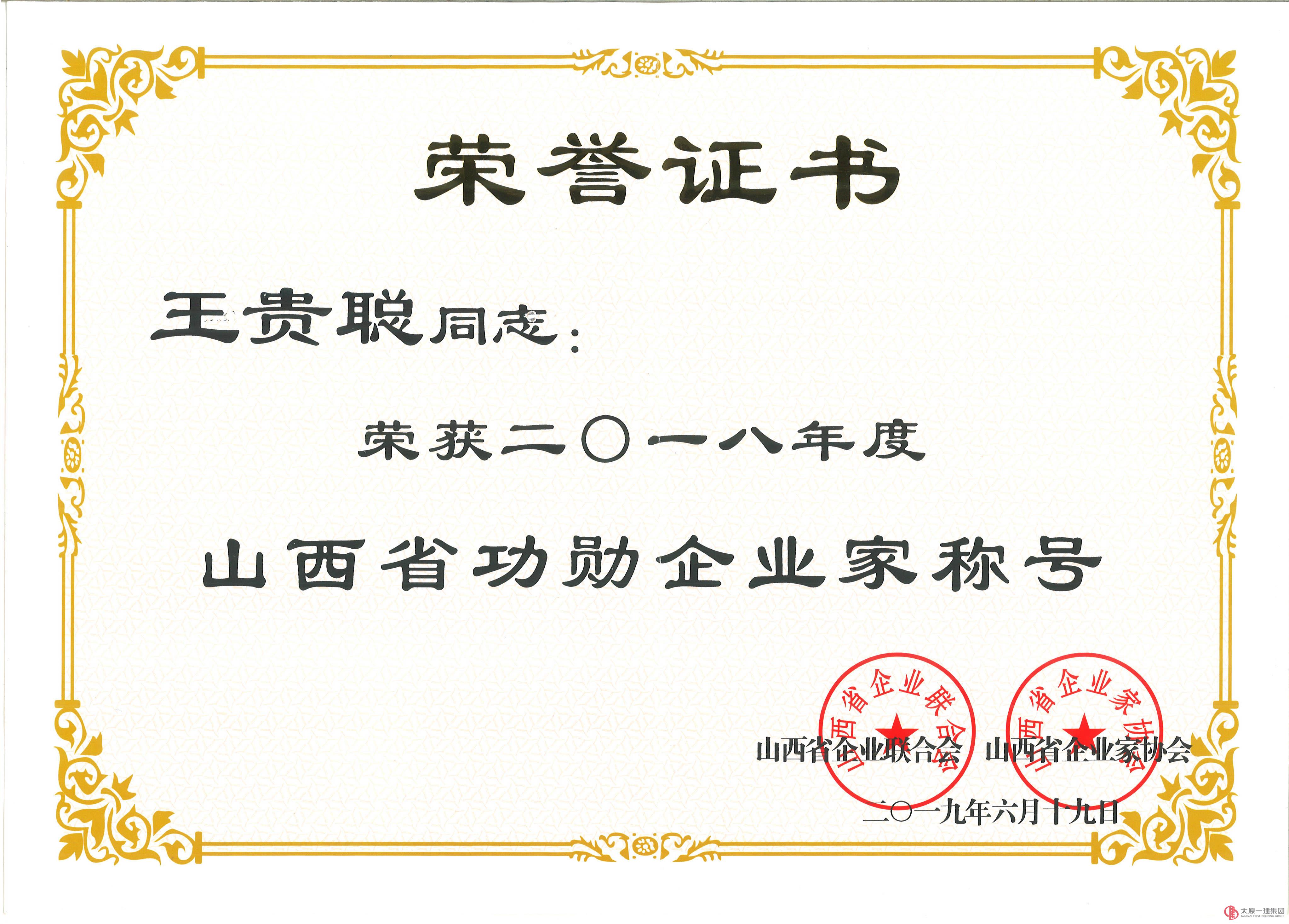 集团公司荣获山西省企业联合会、山西省企业家协会命名表彰的2018年度“山西省功勋企业”称号。董事长王贵聪获“2018年度山西省功勋企业家”称号。并且集团公司荣获了“2019山西省企业文化优秀成果”一等奖。