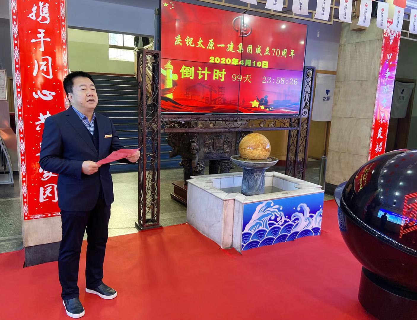 2020年1月2日上午10时18分,太原一建成立七十周年暨成功改制十周年庆典活动倒计时100天启动仪式在集团公司隆重举行。集团公司董事长王贵聪携领导班子全体、机关部门负责人全体参加仪式,党委委员、工会主席李瑞琪主持仪式。
