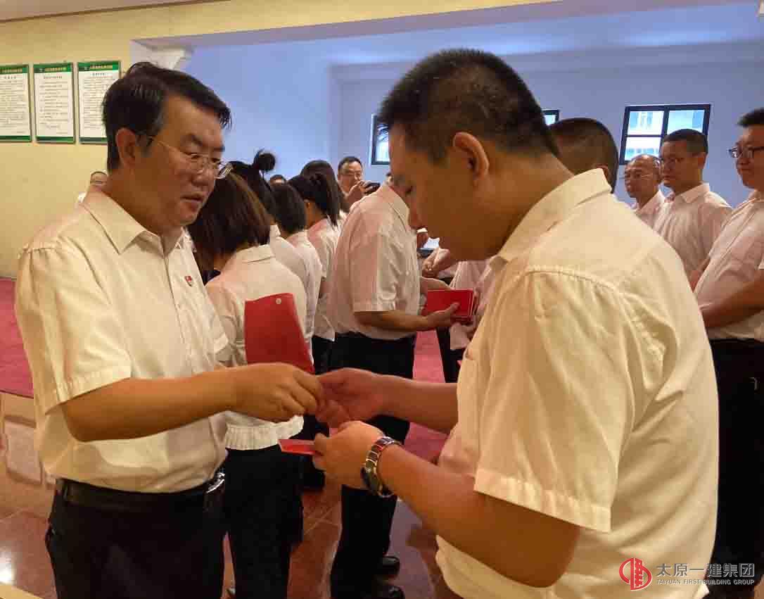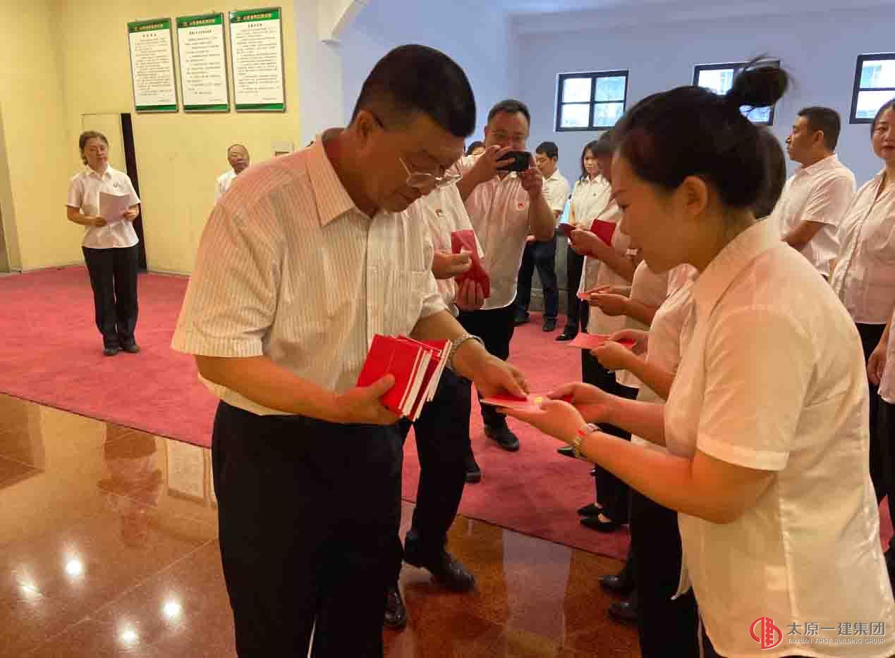 党委副书记宋双玉代表党委作了重要讲话,在对新党员表示祝贺的同时,对相关党支部提出要继续抓好对预备党员培养教育考察的要求,并寄予预备党员殷切希望,希望同志们不要辜负党组织的期望,不仅在组织上入党更要在思想上入党,要牢记入党日子,牢记入党誓词,牢记党的宗旨,牢记党的使命,发扬党的优良传统,立足本职岗位创先争优,充分发挥先锋模范作用,认真贯彻落实好上半年经济分析会议精神,把企业“六保四提”和六条主要工作措施落到实处,提速三季度,冲刺下半年,为完成全年目标任务努力奋斗,做合格的共产主义战士。随后,两位党委领导分别为预备党员赠送党章和党员徽章。