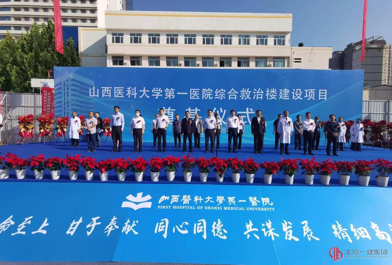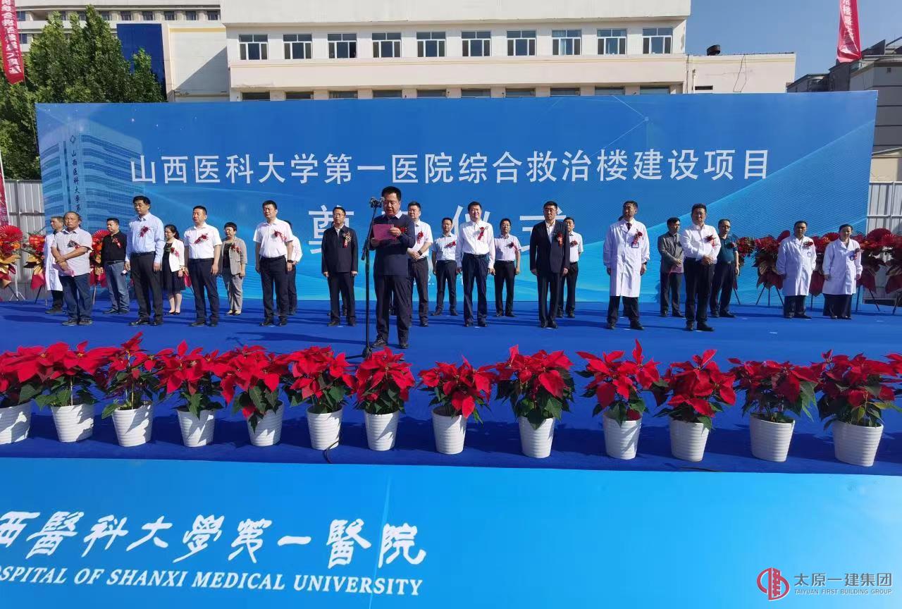 9月12日上午,由太原一建集团承建的山西医科大学第一医院综合救治楼建设项目举行开工奠基仪式。山西医科大学校长解军、山西省卫健委副主任张波、山西省发改委二级巡视员霍喜福、山西省医保局副局长冯智、山西省财政厅社保处处长刘国宏、迎泽区区长赵学军、山西医科大学第一医院党委书记徐钧,太原一建集团党委书记董事长王贵聪、总经理李世雄、党委副书记李瑞琪、常务副总经理赵峰、副总经理李伟,山西省建设监理公司董事长张建安出席开工典礼。委直各医疗卫生机构党政领导,所属各参建单位主要负责人及项目管理人员等共计100余人参加。开工典礼由山西医科大学第一医院院长张瑞平主持。